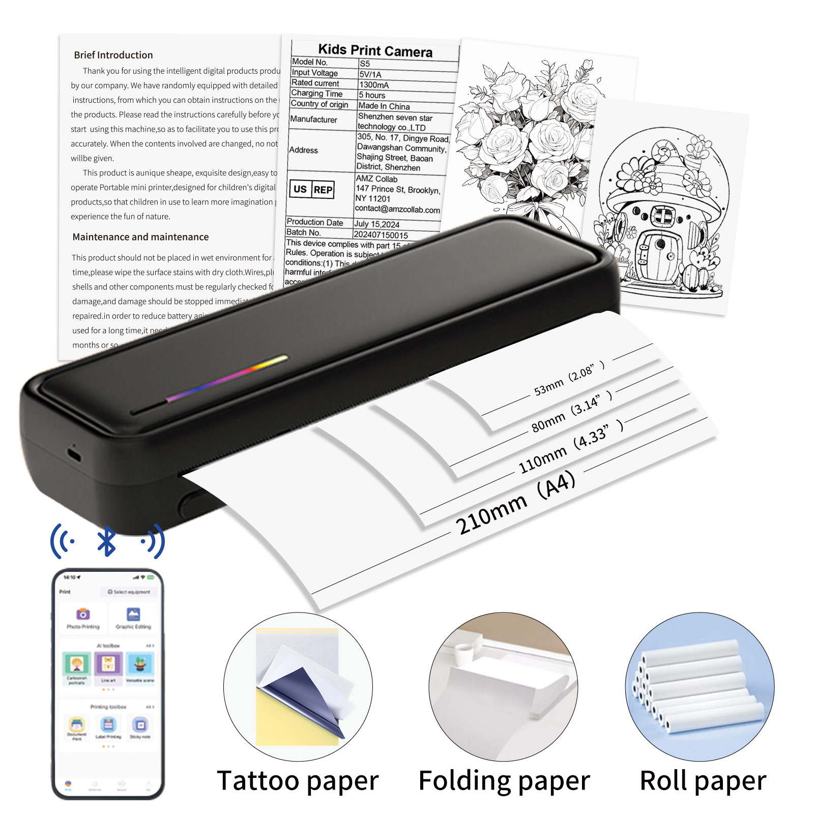 Imprimante thermique A4 mini portable Bt Usb Imprimante thermique pour tatouage Copieur thermique sans fil Batterie Imprimante pour pochoir de tatouage